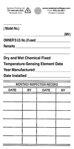 Back of tag has extinguisher data. and Monthly Inspection Records.
