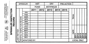 Fire Sprinkler Inspection Record Tags