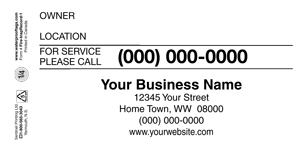 Company contact information is pre-printed on the front and name of owner and location are added with a waterproof marking device.